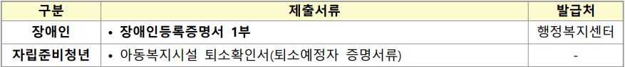| 입주신청서 | • 신청자 전원 해당 (양식 첨부) | 신청자 작성[양식 첨부] |