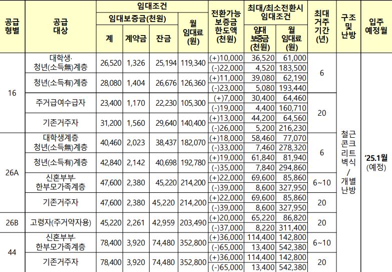 - 소득이 없는 “청년 계층” 신청자는 동일 면적의 대학생 계층 임대조건이 적용됩니다. 임대조건은 재계약전까지 유지되며 재계약시 소득 유무에 따라 변경된 임대조건을 적용합니다