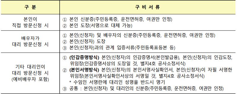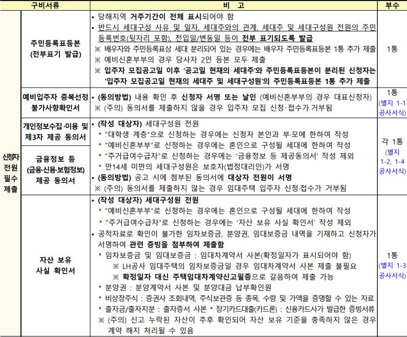 ■ 현장 청약접수 시 본인 또는 대리인 구비서류 (PC/모바일 신청자는 해당사항 없음)